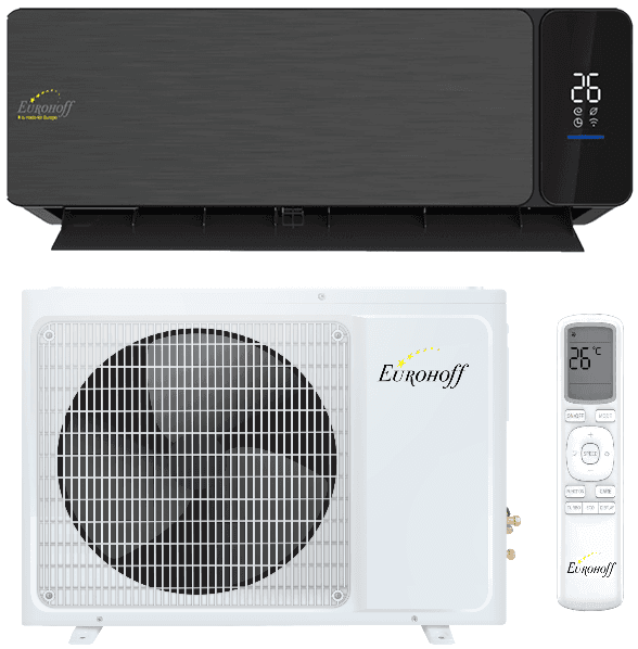 Eurohoff (Еврохофф) Velvet IRF-07B – это бытовой настенный кондиционер для маленьких комнат (до 20 кв. метров). Внутренний блок сплит-системы имеет элегантную черную расцветку и большой LCD-дисплей с цветной индикацией состояния работы. Наружный блок выстроен на базе инверторного компрессора. Пульт ДУ в комплекте. Особенности и преимущества: Инверторная схема работы компрессора. Стильный черный внутренний блок. LED дисплей с цветной индикацией. Высокий класс энергоэффективности А. Встроенный Wi-Fi модуль. Комфортный уровень шума. Пульт ДУ в комплекте. Функция I Feel. Покрытие Gold Fin. Самодиагностика. Самоочистка. Таймер 24 ч. Авторазморозка. Авторестарт. 5 скоростей вентилятора. Авторежим. Голосовое управление. Объемное воздухораспределение 3D AirFlow. Гидрофильное покрытие на испарителе. Накладки на вентили. Озонобезопасный фреон R410A. Антибактериальный фильтр. Моющийся фильтр. Серия настенных кондиционеров Velvet Black представлена тремя моделями с холодопроизводительностью 2.35, 2.8 и 3.7 кВт. Все сплит-системы являются инверторными и работают на озонобезопасном фреоне R410A. Во внутренние блоки встроены антибактериальный и предварительный фильтры, а наружные блоки защищены от коррозии, загрязнения и ультрафиолетового излучения.