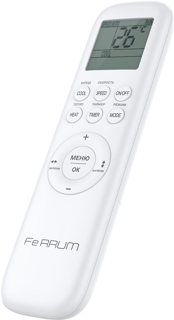 Компактный настенный кондиционер Ferrum (Феррум) Titan iFIS07VR1/iFOS07VR1 работает на основе инверторного компрессора от GMCC. В качестве хладагента выступает безопасный и энергоэффективный R32. Увеличенный диапазон рабочих температур помогает достичь стабильного охлаждения и обогрева. Особенности и преимущества: Увеличенный температурный диапазон Объемное распределение воздуха 4D Русифицированный пульт 5 скоростей вентилятора 24-часовой таймер Держатель пульта в комплекте Wi-Fi Ready (опциональный модуль SIW03A1) Универсальный дизайн Компания Ferrum представляет новую линейку настенных кондиционеров с инверторным управлением - Titan Inverter. Модельный ряд 2025 года состоит из высокоэффективных устройств с возможностью установки Wi-Fi модуля для удаленного управления. Инверторные изделия работают с высокой эффективностью, что позволяет снизить затраты на электроэнергию.