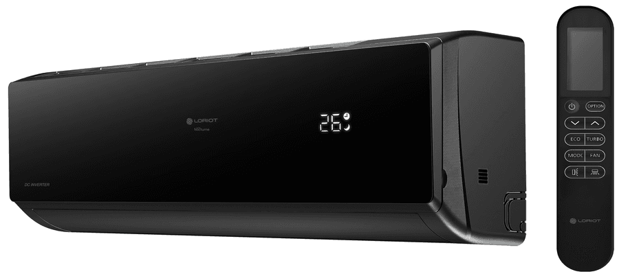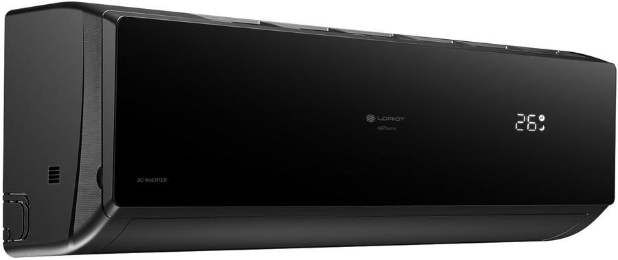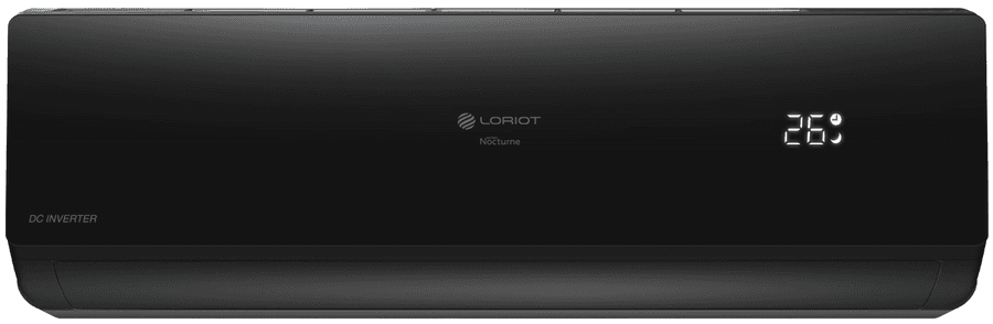 Loriot (Лориот) Nocturne LAC-07TNI – это инверторный бытовой кондиционер с настенным типом монтажа. Теплообменник сплит-системы имеет антикоррозионное покрытие. Во внутренний блок встроены предварительный, угольный и серебряный фильтры для качественной очистки воздуха. Есть функции таймера, iFeel, самодиагностики и пр. Особенности и преимущества: 4 режима работы: охлаждение, обогрев, вентиляция, осушение. Hidden display. iFeel. Беспроводной пульт в комплекте. Встроенный Wi-Fi. 4D Air-flow. Антикоррозийное покрытие Golden Fin. Дополнительные фильтры очистки воздуха: серебряный, угольный. Надежный инверторный компрессор. Самодиагностика. Авторестарт. Таймер. Режим AUTO. Режим Турбо. Режим ECO. Режим разморозки. Стабилизатор напряжения. Низкий уровень шума. Класс энергоэффективности А. Моющийся фильтр. Хладагент R32. Универсальный монтаж. Подключение к Умному дому (опция). Серия Nocturne Inverter состоит из пяти базовых моделей с холодопроизводительностью 2.2-7.03 кВт. Внутренний блок каждой сплит-системы имеет изящную черную расцветку с глянцевой отделкой передней панели. Здесь же располагается и скрытый LED-дисплей. Все кондиционеры оборудованы модулем Wi-Fi и опционально подключаются у Умному дому.